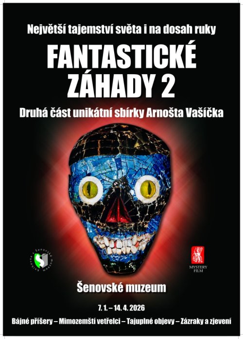 Po předloňské velmi úspěšné expozici bude vystavena i druhá část unikátní sbírky Arnošta Vašíčka, která zavede návštěvníka do mnoha exotických lokalit naší planety, ale také na tajemná místa v našem okolí. Představeny budou desítky záhad od historických otazníků přes paranormální úkazy až k důkazům o návštěvách mimozemských civilizací. Mezi mnoha fascinujícími exponáty najdeme mimo jiné mumifikované ostatky pověstné chupacabry, lebky trpaslíků z Egypta a ostrova Flores, věrnou rekonstrukci hlavy žabí nestvůry, pozorované v USA, tajemnou Masku smrti, fetiše afrických kouzelníků i starověké sošky představující mimozemské vetřelce.Neznámou historii lidstva přiblíží technické vynálezy, které ve své době neměly existovat: Bagdadské baterie, počítač z Antikythery či disk z Nebry. Zvlášť děti jistě zaujme dva metry vysoká rekonstrukce tajemného Wendiga nebo monstra a nestvůry z řeckých bájí. Vystaveno bude věrné zpodobnění Medúzy, Harpyje, Sirény, Minotaura, trojhlavého psa Cerbera i lebka Kyklopa. Zvláštní část je věnována svatému grálu, kopí osudu, mariánským zjevením a otiskům duší z očistce. Originální exponáty z Vašíčkových výprav doplňují kvalitní muzejní repliky a na mnoho barevných fotografií.